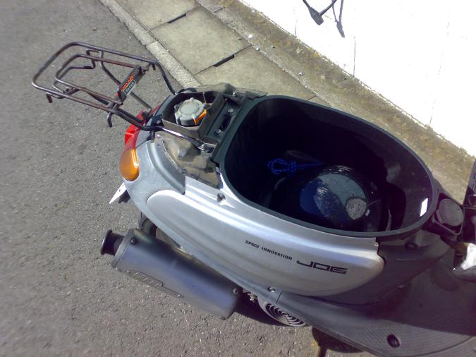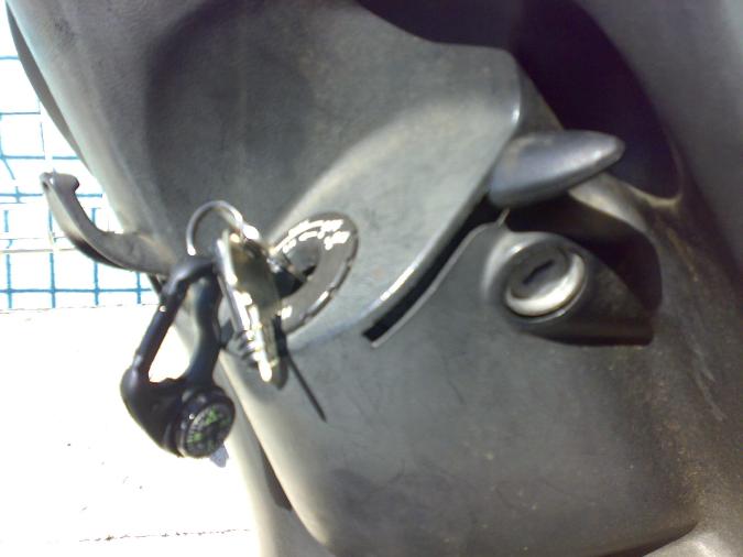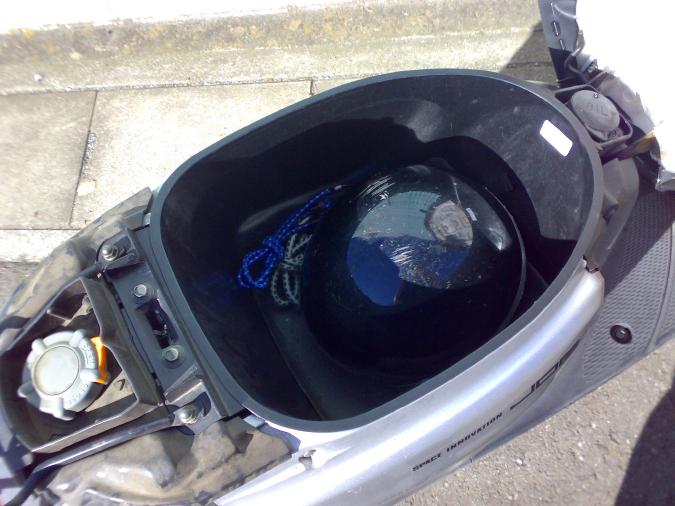 わずかな時間、原付を離れる時、ここに半キャップを引っ掛けます。