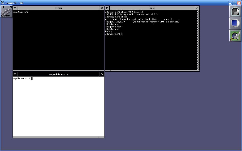 CygwinのX Windowにてクライアントの