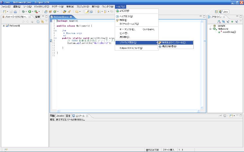 同様にeclipseメニューバーで