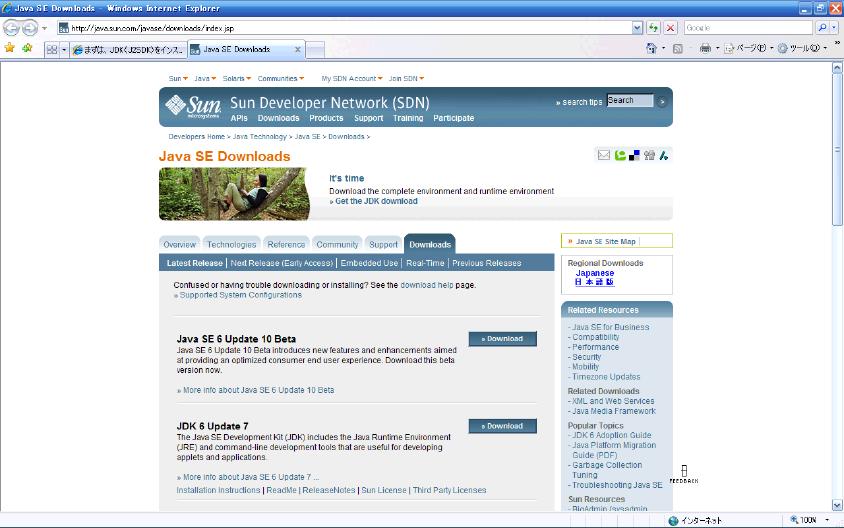 "jdk-6u7-windows-i586-p.exe"をダウンロード。