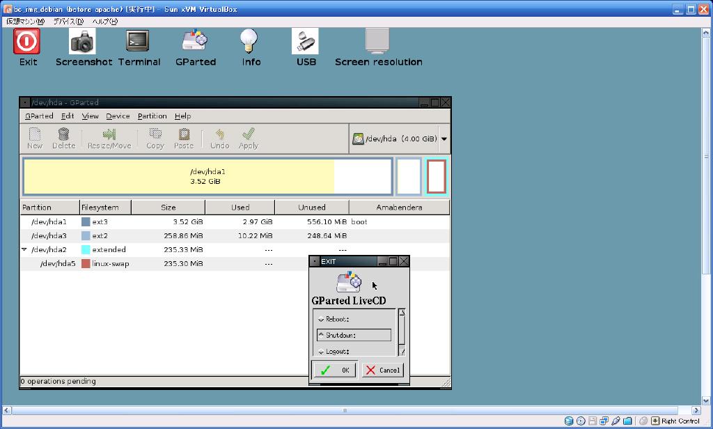 "Exit"アイコンを左クリック、"Shutdown"ラジオボタンを