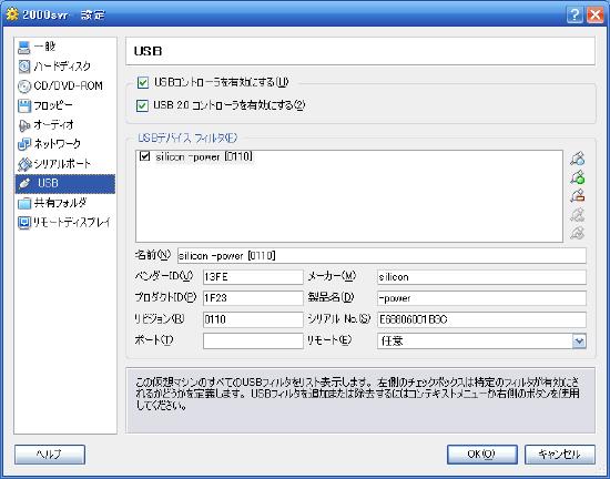 何はともあれ仮想PCがusbメモリを認識するか確認です、