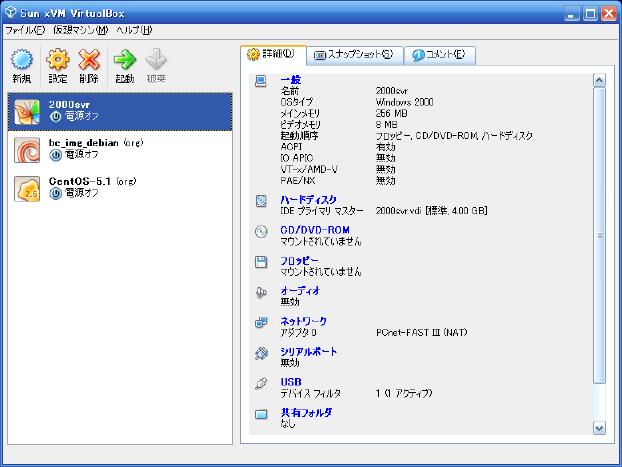 ホストOS(XP)の関係から、先日構築した2K Server環境で