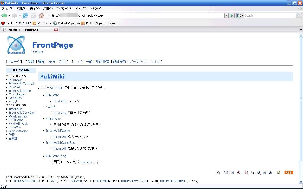 作業自体は簡単だったので、かなり手抜きな記録です、 注意点としてはyumでphpをインストールする際、 同時にapacheもインストールされてしまう点でしょうか・・・ テスト動作OK。 php動作OK。 pukiwiki動作OK。 今回は本当に手抜きですね・・・。