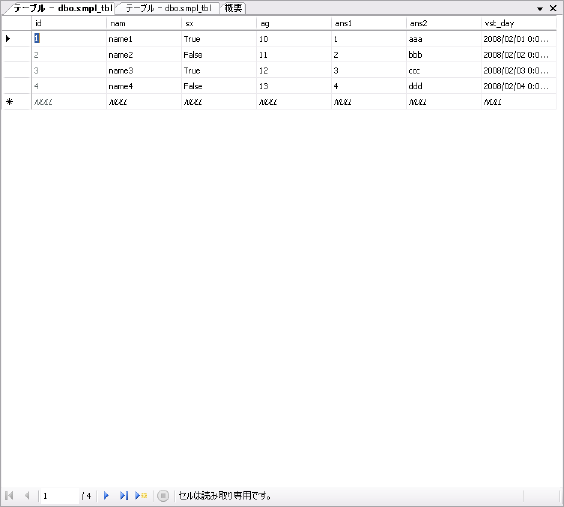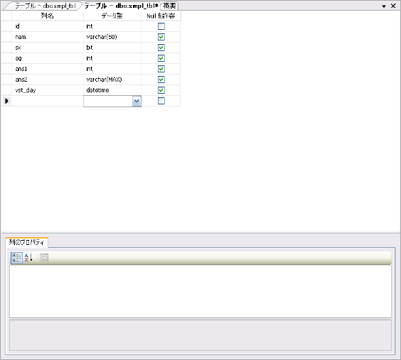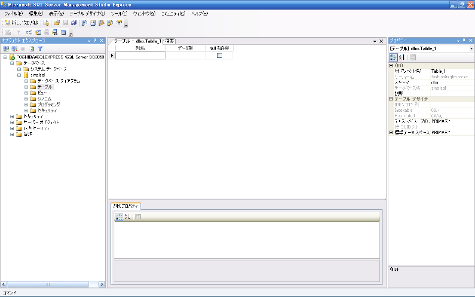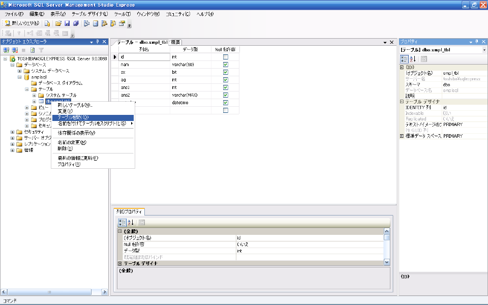 "dbo.smpl_tbl"が保存された事が確認できます。