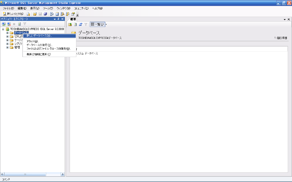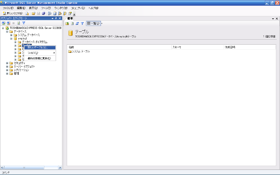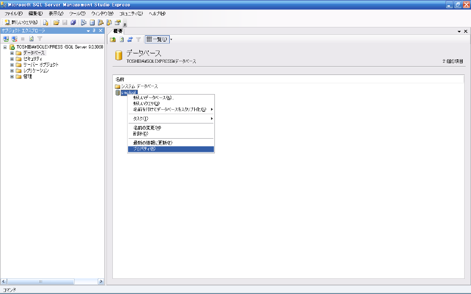 "オブジェクトエクスプローラ"上で