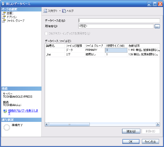 新しいデータベースダイアログが開きます、