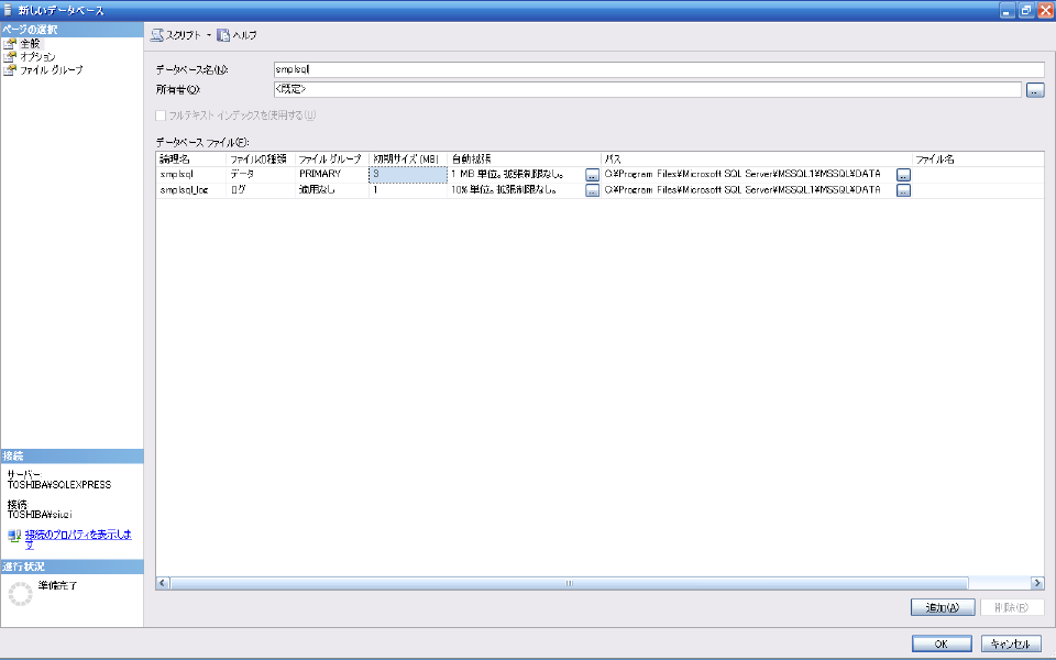 データベース名は"smplsql"としました、
