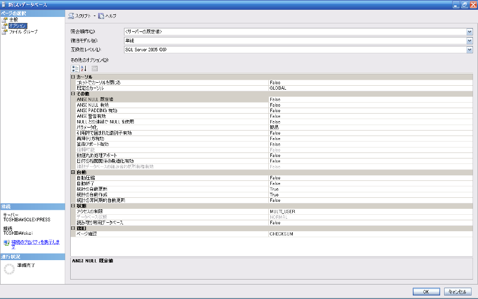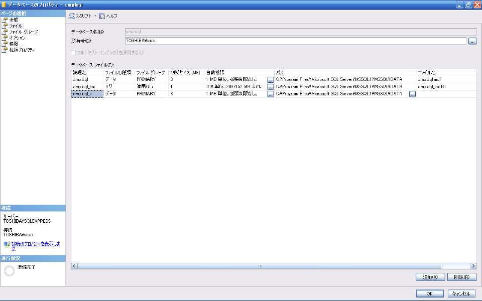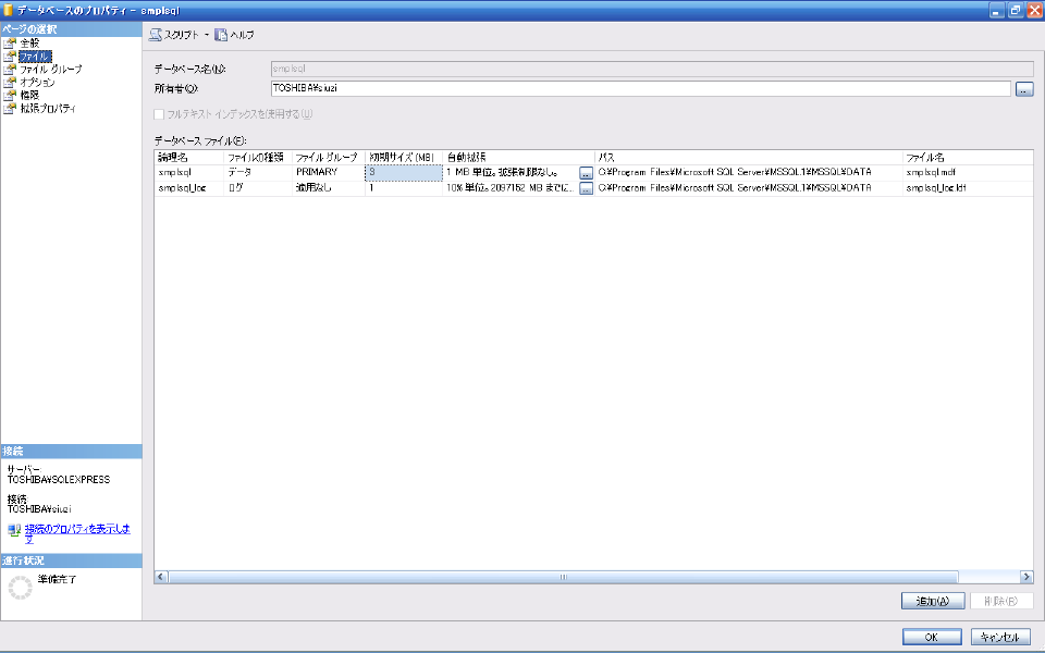 作成された"smplsql"のプロパティを確認します。