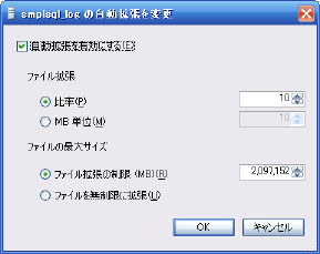 論理名"smplsql"の行、"自動拡張"フィールドの