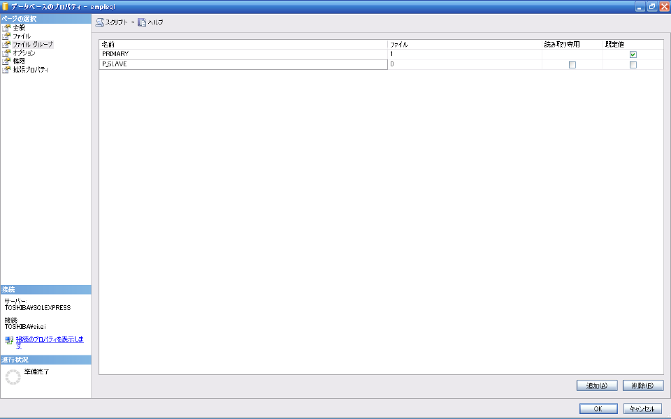 ファイルグループは先程の"P_SLAVE"を選択、