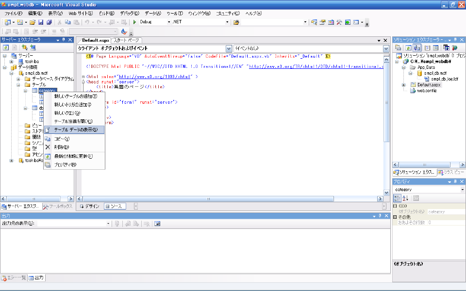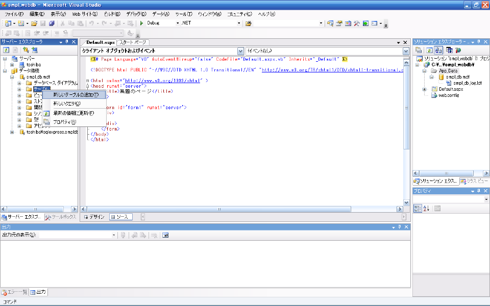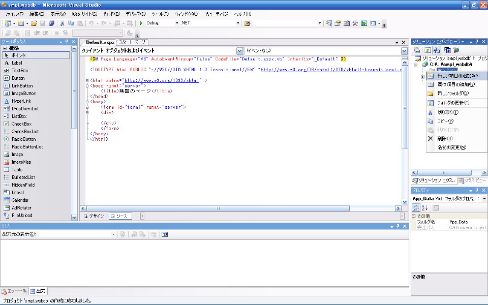 "ソリューションエクスプローラ"上の"App_Data"にて右クリック、