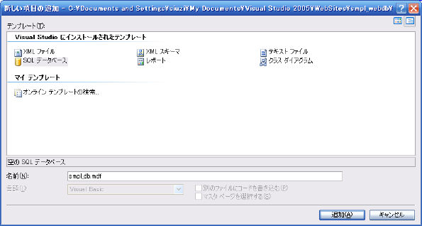 SQLデータベースを選択、名前を"smpl_db"とし、