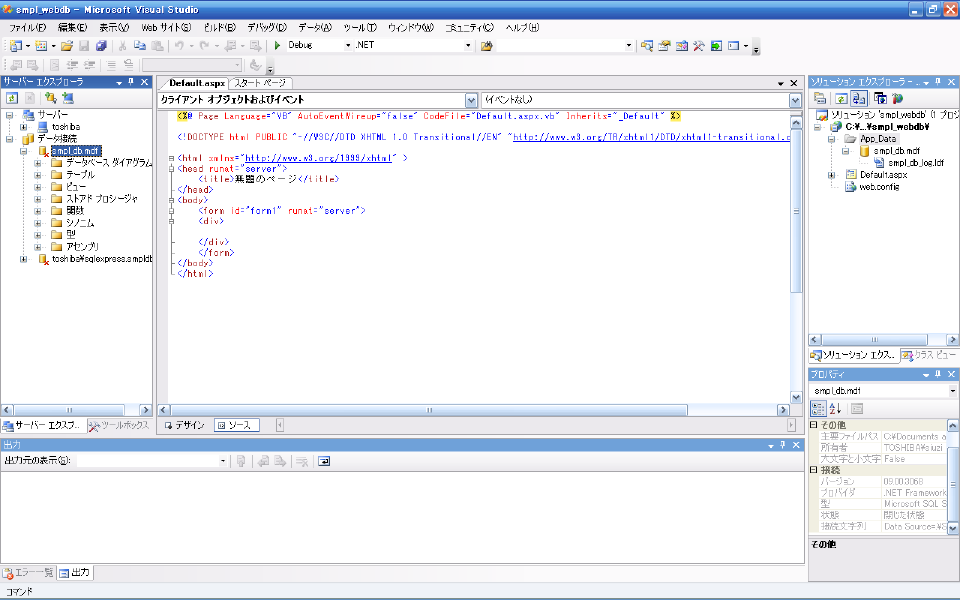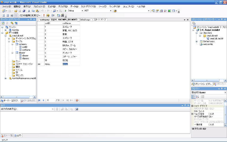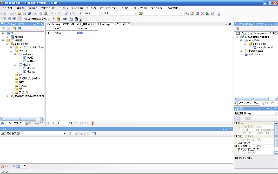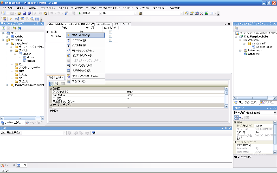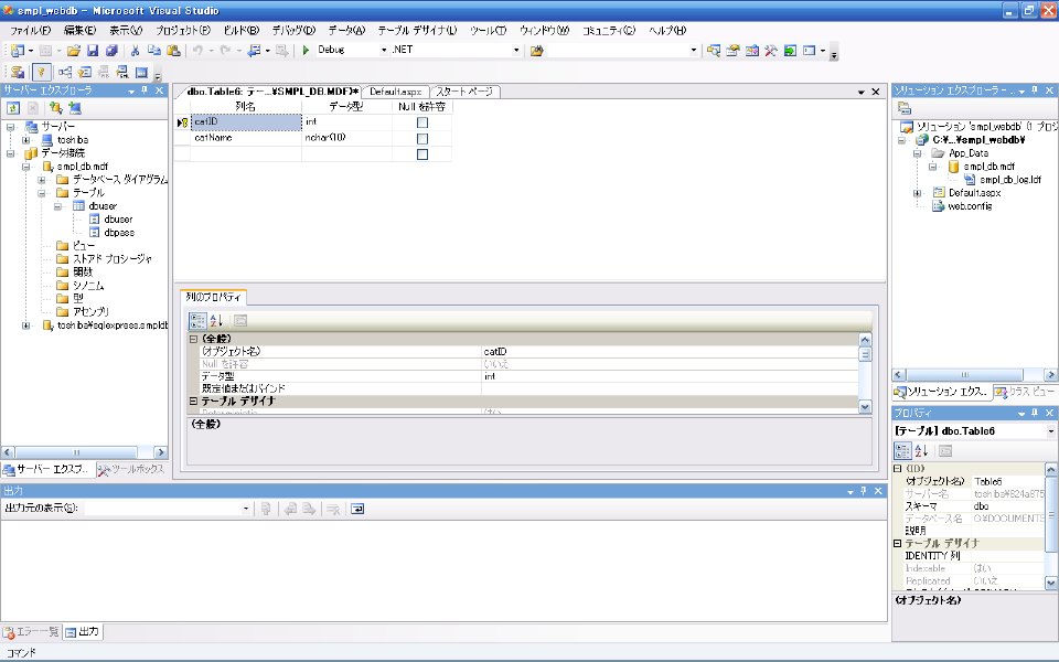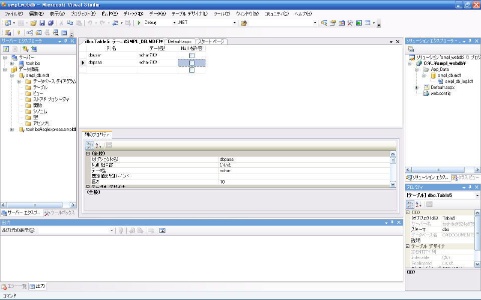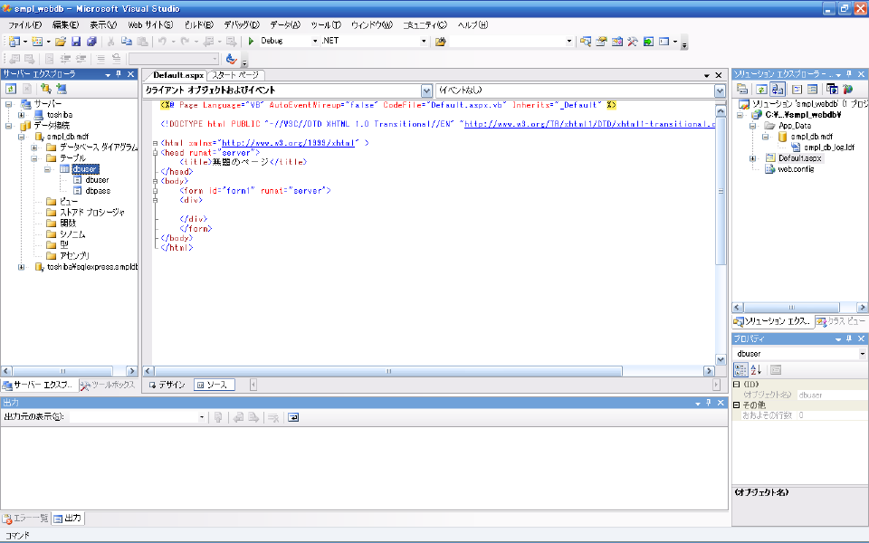 "サーバーエクスプローラ"にて"dbuser"テーブルが
