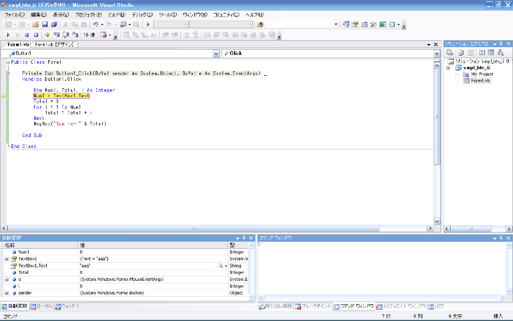 と言う事でNum1を文字列としテキストボックス内を取得、