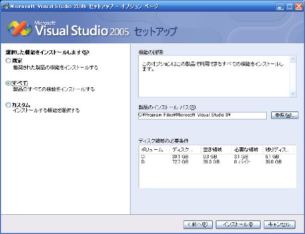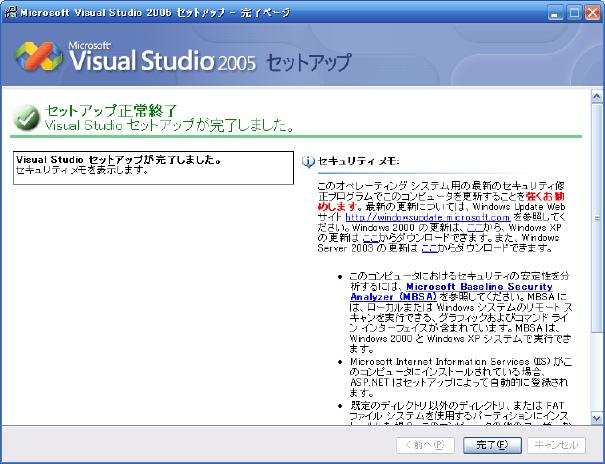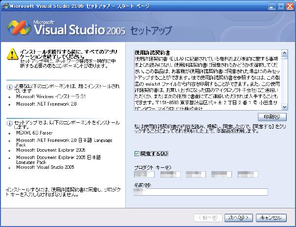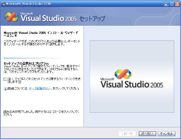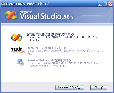"Visual Studio 2005のインストール"をクリック、
