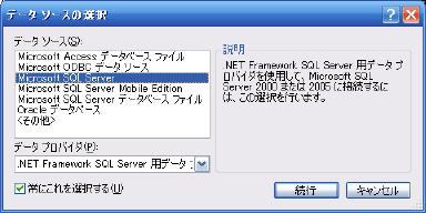 "Microsoft SQL Server"を選択、"続行"ボタンをクリック。