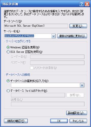 サーバ名に"localhost\SQLEXPRESS"を入力し