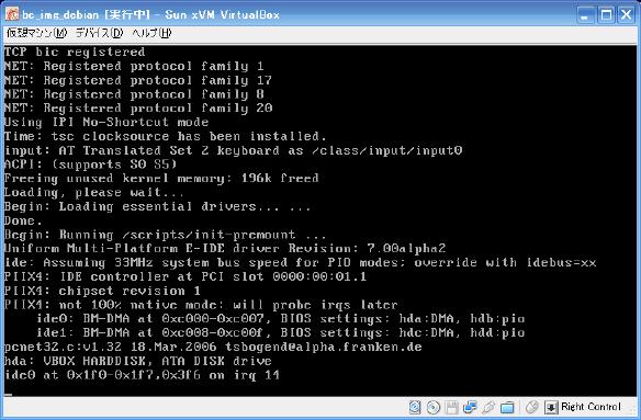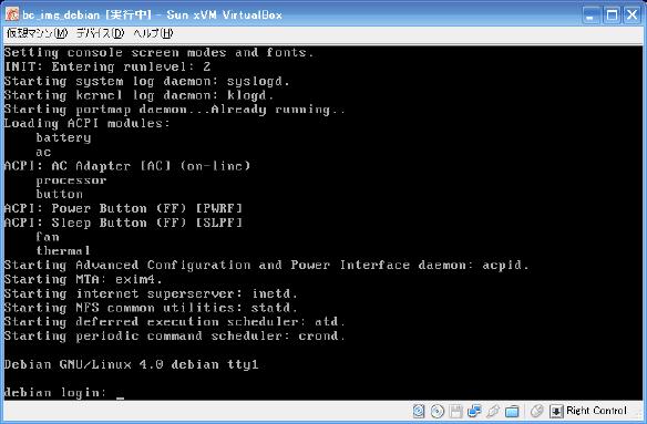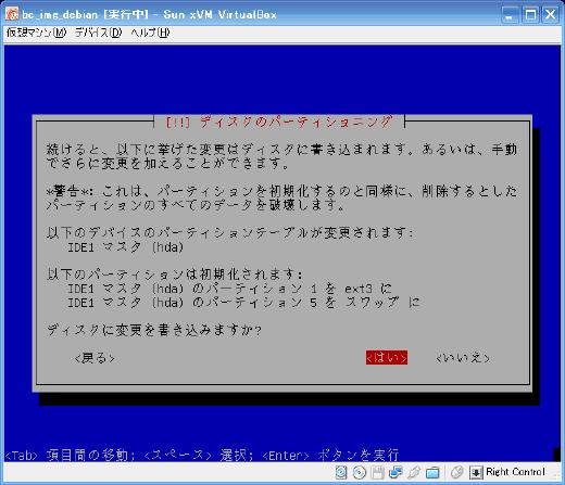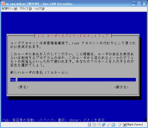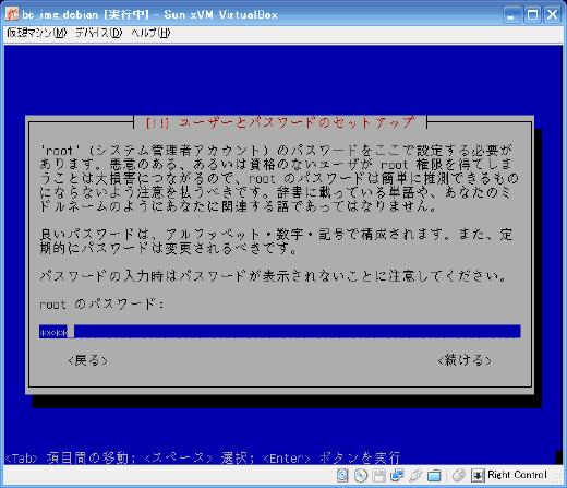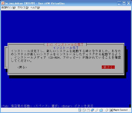 このまま"続ける"でenterキー、仮想PCが再起動します。